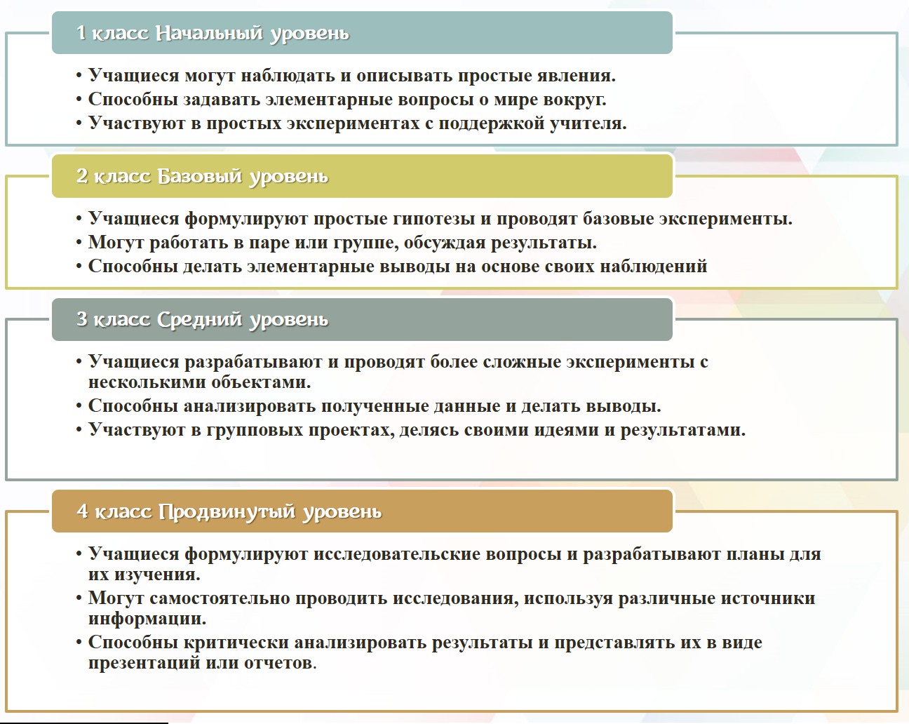 УРОВНИ СОФРМИРОВАННОСТИ ИССЛЕДОВАТЕЛЬСКИХ НАВЫКОВ